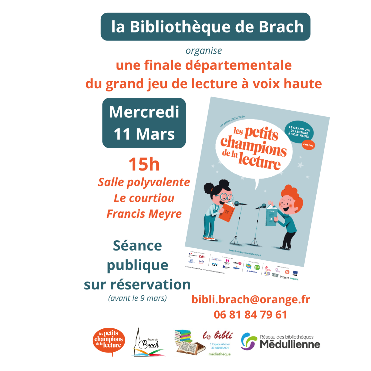 supervisor_account Bibliothèque de Brach/association Les Petits champions de la lecture